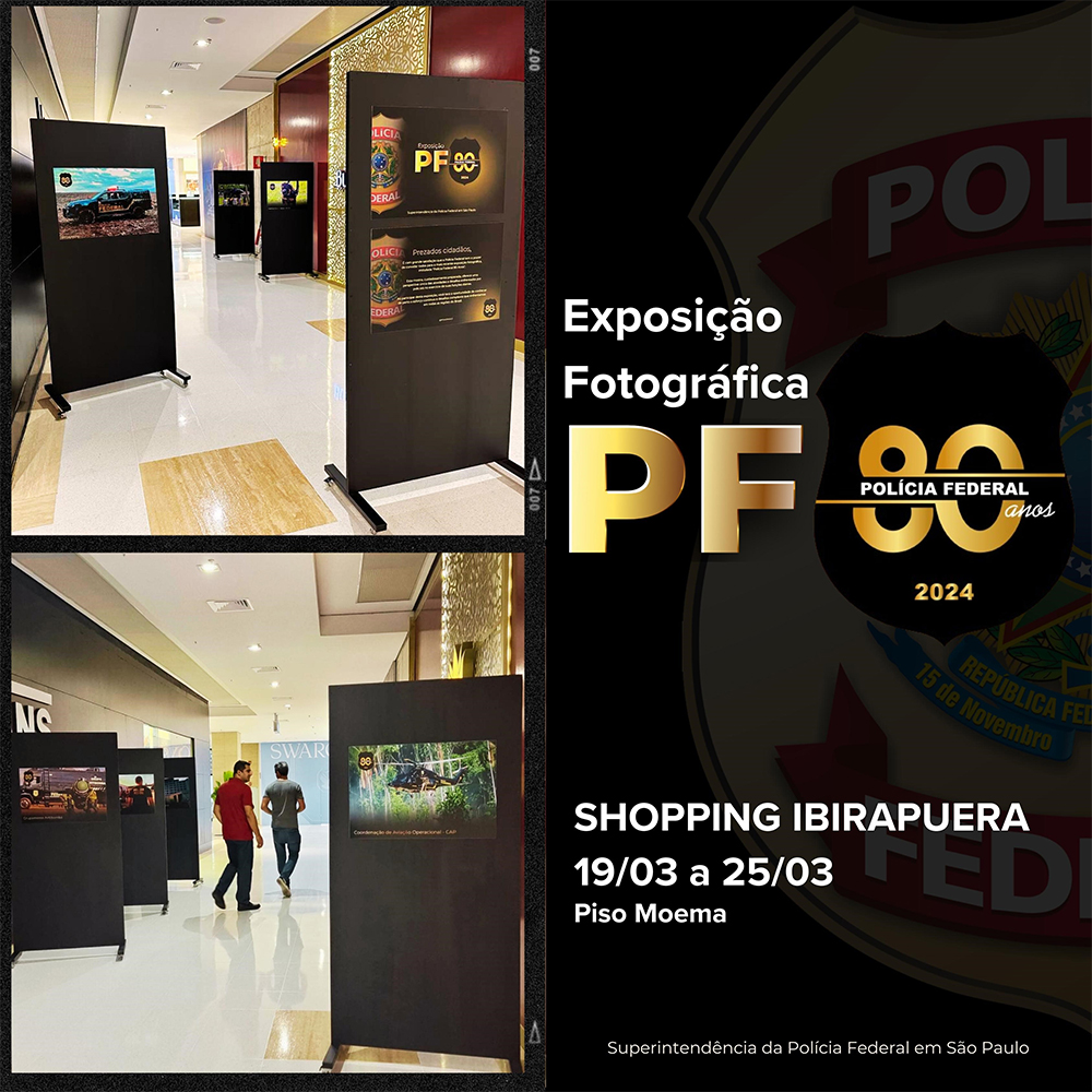 Junte-se a nós para celebrar e reconhecer o compromisso e a dedicação da Polícia Federal ao longo desses 80 anos de história. A entrada é livre, e a exposição estará acessível das 10h às 22h, a partir desta terça-feira, 19 de março, no piso Moema no Shopping Ibirapuera.