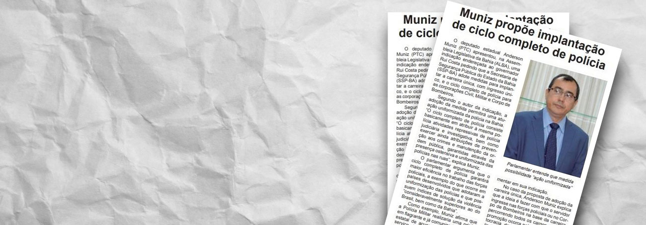 Deputado estadual na Bahia, APF Anderson Muniz propõe implantação de ciclo completo de polícia