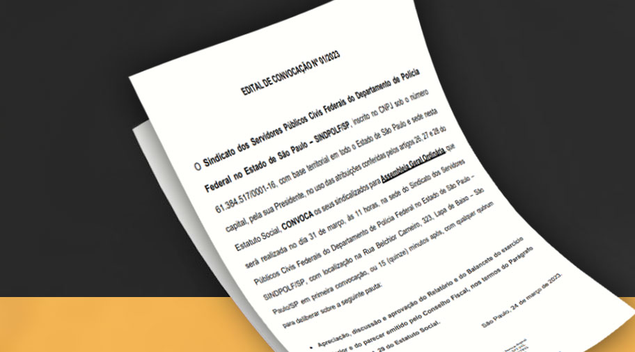 SINPF/SP convoca filiados para Assembleia Geral Ordinária