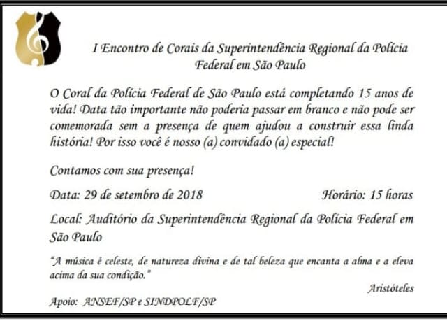 CONVITE: I Encontro de Corais da Superintendência Regional da PF