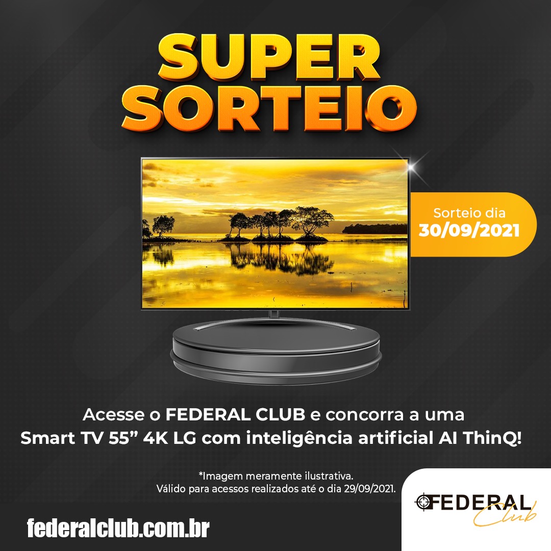 Atenção, associado do Federal Club: o clube de vantagens sorteará uma Smart TV 55’’ com inteligência artificial ThinQ. Para concorrer, basta acessar o FC até o dia 29 de setembro. É isso mesmo, somente um acesso já te coloca na jogada.