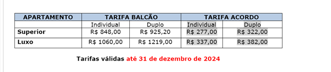 Conheça a tabela abaixo com os preços e o diferencial ofertado ao sindicalizado e em dias em que não há grandes eventos na cidade.