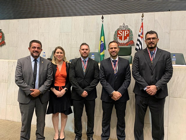 Os agentes de Polícia Federal: Danilo César Campetti, Flavio Antonio Gomes e João Paulo Dondelli receberam na última sexta-feira (14), em sessão solene na Assembleia Legislativa de São Paulo, o “Colar de Honra ao Mérito Legislativo do Estado de São Paulo” – homenagem oferecida a pessoas, brasileiras ou estrangeiras, que tenham atuado de maneira a contribuir para o desenvolvimento social, cultural e econômico de São Paulo.