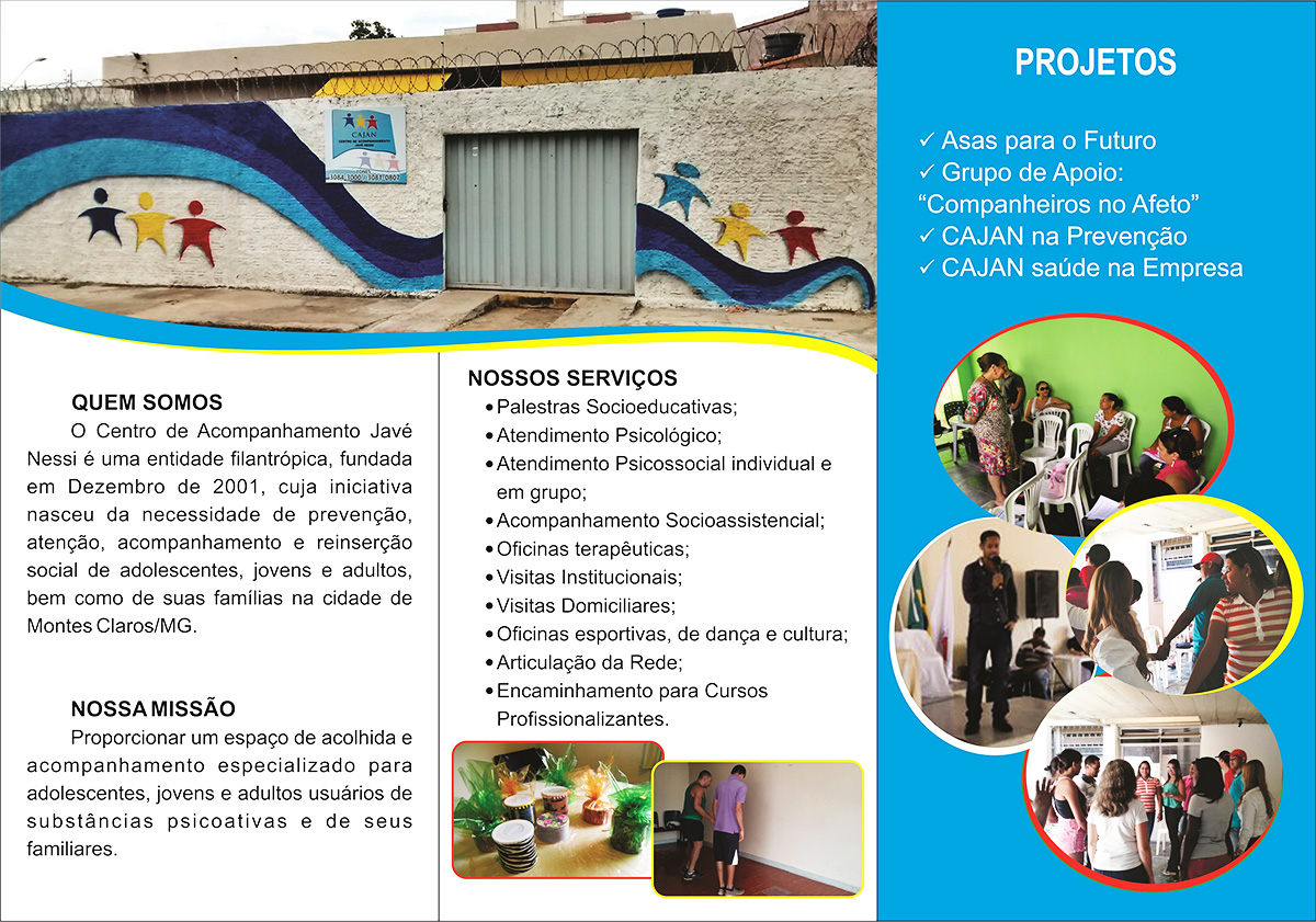Ele coordena o projeto “Cajan” que existe há mais de 15 anos, atendendo adolescentes e suas famílias em situação de toxicodependência ou vulnerabilidade social. “Meu papel é como que um maestro de uma orquestra., sou responsável por conseguir parceiros e recursos para manutenção e sobrevivência do projeto”, explica. “Acredito que as dificuldades são as mesmas de todas as instituições: falta de ajuda do poder público e da sociedade para manutenção do projeto. A sociedade simpatiza e aplaude a importante atuação do CAJAN, mas são poucos os que fato se comprometem e ajudam na sustentabilidade do projeto”, revelou.