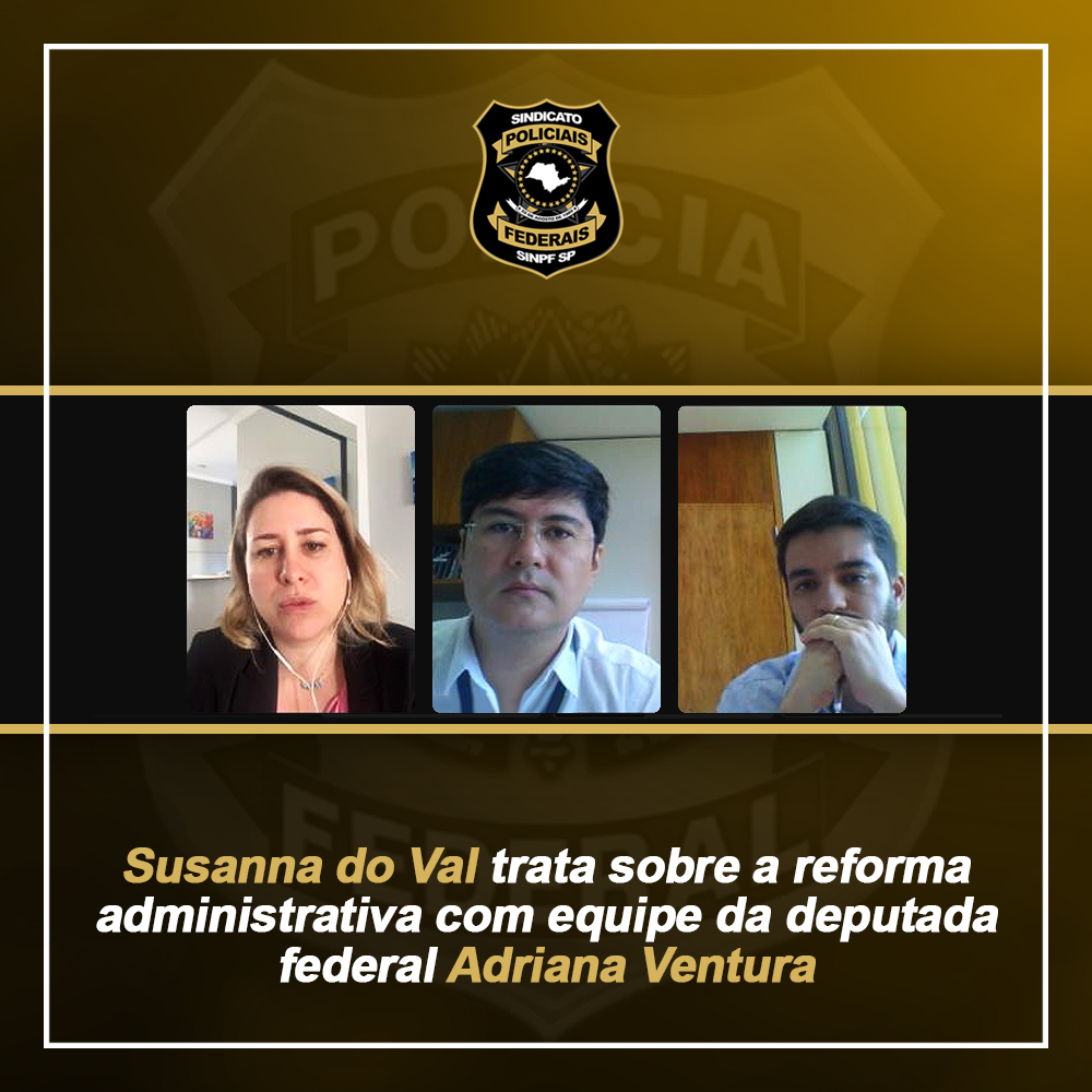 No encontro virtual, Susanna tratou sobre a reforma da PEC 32 , onde explicou os pontos que são considerados vulneráveis e pediu apoio a proteção de garantias de trabalho para os policiais federais, para que a Instituição possa continuar desempenhando suas ações que resultaram em grande credibilidade na sociedade.