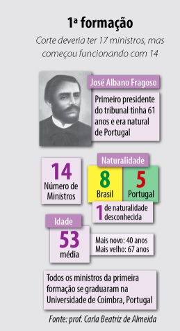 Na primeira composição, o Supremo teve 14 ministros. Três assentos ficaram vagos. Pela lei, as vagas deveriam ser ocupadas pelos desembargadores mais antigos dos quatro Tribunais da Relação do Império (Rio de Janeiro, Bahia, Pernambuco e Maranhão). A advogada e professora Carla Beatriz explica: