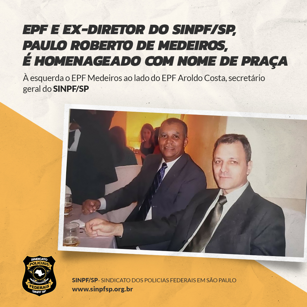 (na imagem à esquerda o EPF Medeiros ao lado do EPF Aroldo Costa, secretário geral do SINPF/SP)