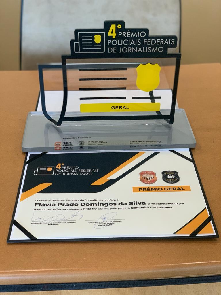 A jornalista Flávia Prado Domingos da Silva ficou em primeiro lugar entre 136 inscritos, com a reportagem Cemitérios Clandestinos, produzida pelo programa Câmera Record, da TV Record. Assista aqui (https://bit.ly/3sZscWE).