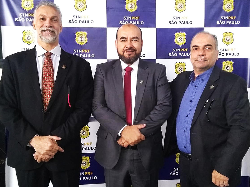 Na foto da esquerda para direita: Alexandre Santana Sally (presidente do SINDPOLF/SP), Fábio Luís de Almeida (presidente do SINDPRF-SP) e Marcos de Jesus Vianna, ex-presidente do SINDPRF-SP