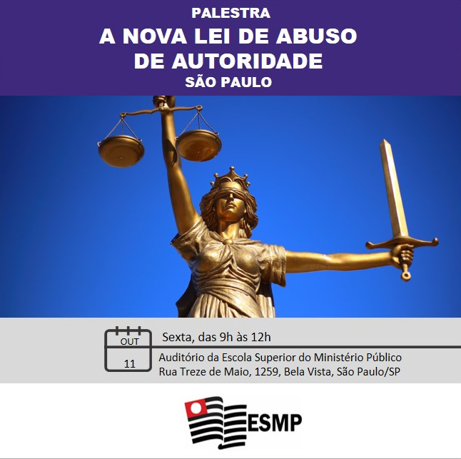 A Escola Superior do Ministério Público de São Paulo promove a palestra "A nova lei de abuso de autoridade", dia 11/10/19, na cidade de São Paulo.