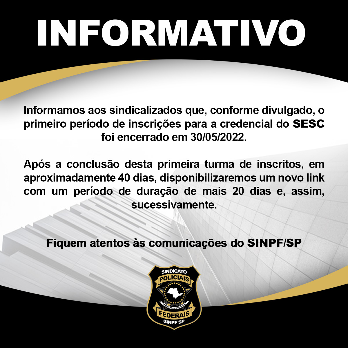 Para dúvidas ou maiores informações, entre em contato com o SINPF/SP através dos telefones, (11) 3617-4790, (11) 97296-0616 (Cintia) ou aqui em nosso site www.portalsp.org.br