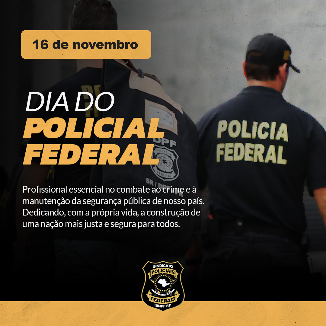 Desse modo, neste dia reservado a celebrar o Policial Federal, o SINPF/SP parabeniza esse profissional, reconhecendo em sua dedicação ao ofício, feita muitas vezes com a própria vida, um elemento crucial à construção de uma nação mais segura, justa e democrática. Sobretudo, é desejo nosso que tal reconhecimento também seja feito pelas pessoas responsáveis em administrar o nosso país.